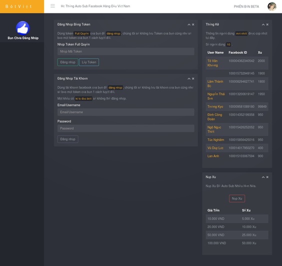 – Hệ thống trừ Xu: Tự động trừ Xu khi User buff sub.